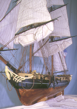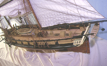 | L'ensemble de la coque, les mats et les vergues ont été faits en poirier, toutes les sculptures (tableau de poupe, figure de proue, ont été réalisées en buis. La construction a été réalisée de la même manière que pour la frégate "La Dryade" |