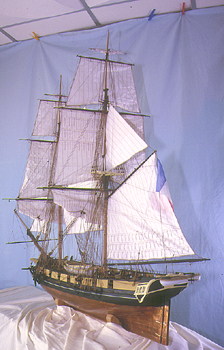 Le conservateur du Musé de Saint Rémi, Monsieur Bouxin, m'a demandé de lui réaliser la maquette d'un brick du début du XIX° siècle, à l'échelle du 1/36 (échelle standard dans la Marine), Cette maquette a été réalisée sur la base des documents de Monsieur Boudriot, architecte et archéologue très connu, à partir de la monographie d'un brick de 24, le Cygne,( équipé de 14 caronades de 24 livres, et de 2 canons de 8 livres). L' Inconstant a été construit en 1810, à Livourne, et rayé des états en 1842 |