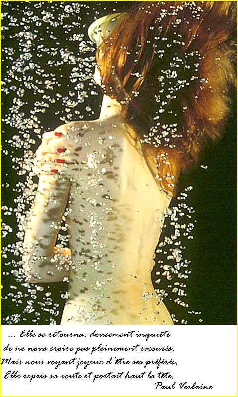 L'Espace Culturel de Saint Memmie a pour cadre une ancienne chapelle faisant partie des bâtiments de la mairie de la Commune, aménagée à l'emplacement d'un ancien établissement religieux, devenu par la suite hôpital et maison de retraite. Cette ancienne chapelle, complètement rénovée, a été aménager pour servir de cadre à des concerts ou des expositions. C'est dans ce cadre que différentes maquettes privées, des photos de maquettes réalisées pour le Musée Saint Rémi, de Reims, des outils propres à ma profession ont été présentés au public. Parallèlement à cette activité, j'ai voulu faire découvrir ce qu'était la photo sous-marine faite en piscine, et j'ai associé à cette manifestation Christine Bollot, mon modèle depuis 7 ans à l'époque, et qui m'a montré à cette occasion ses dons pour la poésie, comme vous pourrez l'apprécier en découvrant ces photos, tirées sur papier pour l'occasion en 30x45. |