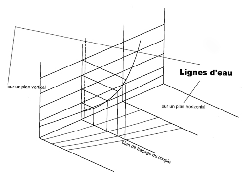 en bas de la feuille. Nota : le bas du couple se mesure sur le plan latéral sur lequel on aura reporté l'emplacement du couple, entre le bas de la coque et la première ligne d'eau. En