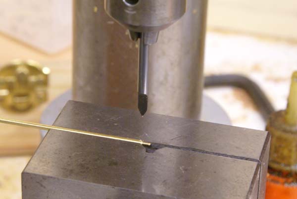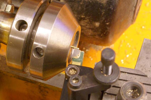 Le rond, serré dans l'étau d'une petite fraiseuse (Emco 5), est pointé à la fraise à graver à une distance de 0,25mm de l'épaulement..... |