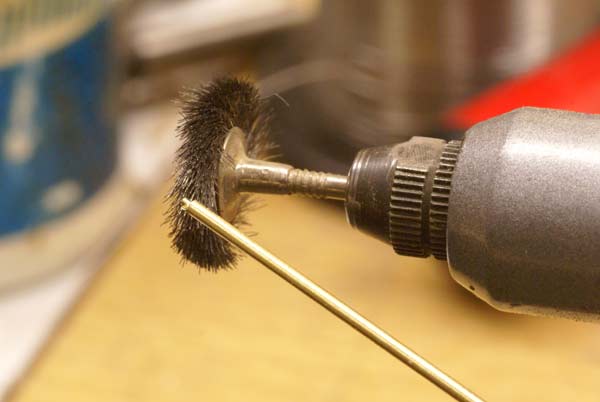 Avant d'être détachée, la cheville va être ébarbée et polie à la brosse circulaire métallique |