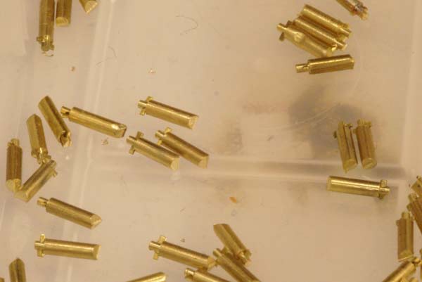 A raison de 4 chevilles par canons (puisque que ce sont les chevilles destinées à fixer les palans de charge et les anneaux de brague), ces éléments, dont la longueur du corps est de l'ordre de 6mm, l'ensemble sera nettoyé aux ultra-sons avant d'être passé à la tourmaline. Il