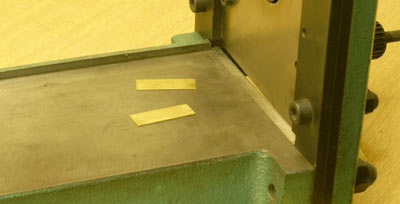 Cisaillage des plaques (2 plaques sont réalisées, car le perçage répété va amener un agrandissement des trous, et nous garderons une plaque en secours). |