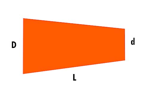 Afin de réaliser un cône, les graduations d'une tourelle étant bien souvent trop imprécises, il convient de relever les cotes D, d à obtenir sur une longueur L. Le cylindre vert représente l'ébauche, la pièce à obtenir étant en rouge. En ayant réglé