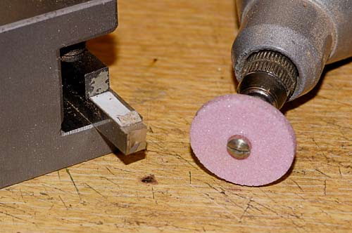 L'usinage se fait à la meule, en approchant le dessin au plus près. L'axe de rotation de la meule doit se trouver plus bas que le plan supérieur du barreau pour donner de la dépouille à l'outil. Cette dépouille doit également se retrouver sur toutes les parties du profil. |