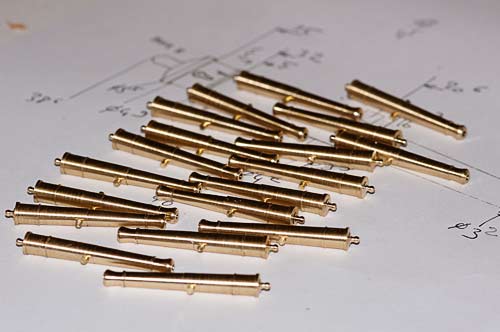 Le canon servant ici aux explications est un canon de 8 long, modèle 1786, échelle du 1/72. Il est réalisé à partir de rond en laiton Ø 6, pour une série de 19 canons. |